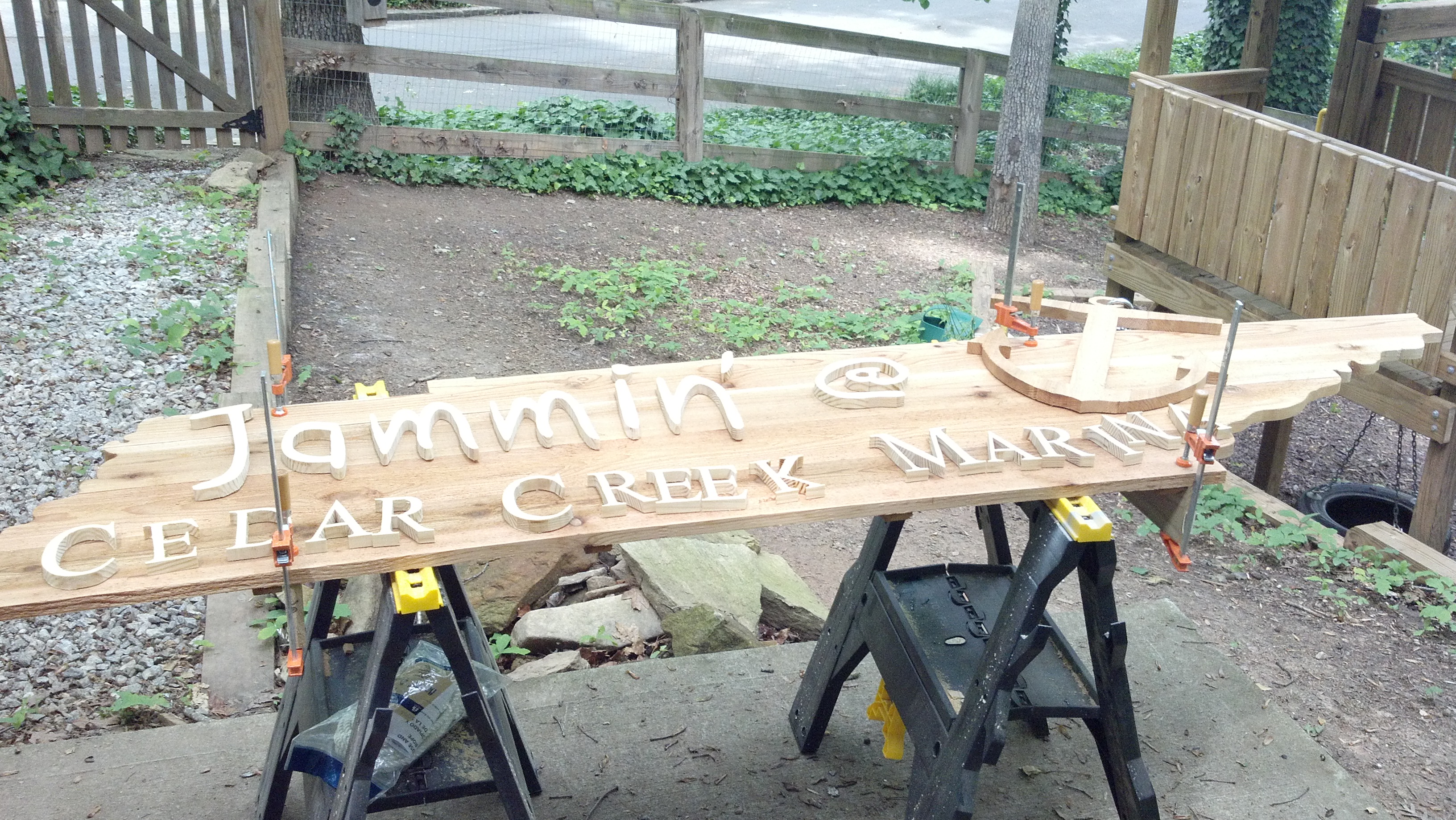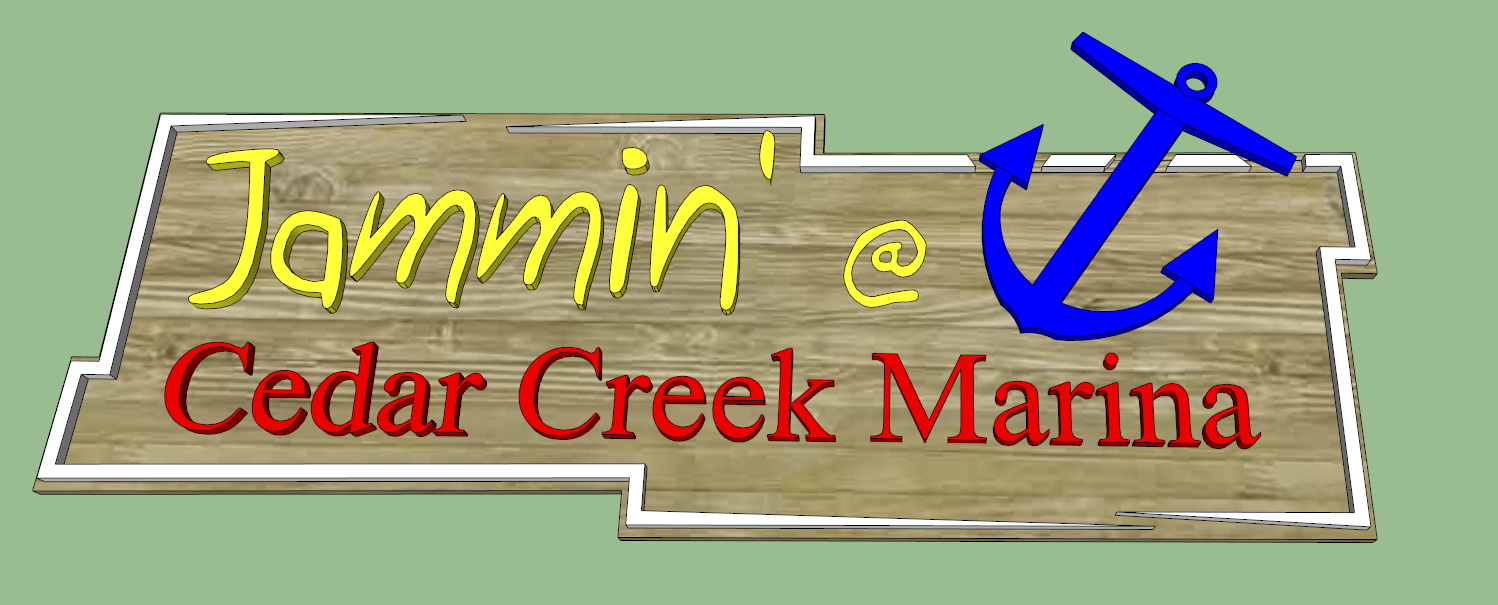 This sign was a commissioned project for a marina outside of Nashville. During the weekends, the marina draws a huge crowd for live bands, food, and a general good time. The area for the bands had just been renovated and was in need of some lively signage. This sign, measuring 8′ in length, is made almost entirely from cedar, hand cut lettering, complete with a “dock rope” surround and stainless steel fasteners. This was a fun project, and gets lots of great use during the spring, summer and fall. Take a look at it for yourself and have a cold brew at Cedar Creek Marina http://www.cedarcreekmarinatn.com Thanks for viewing.