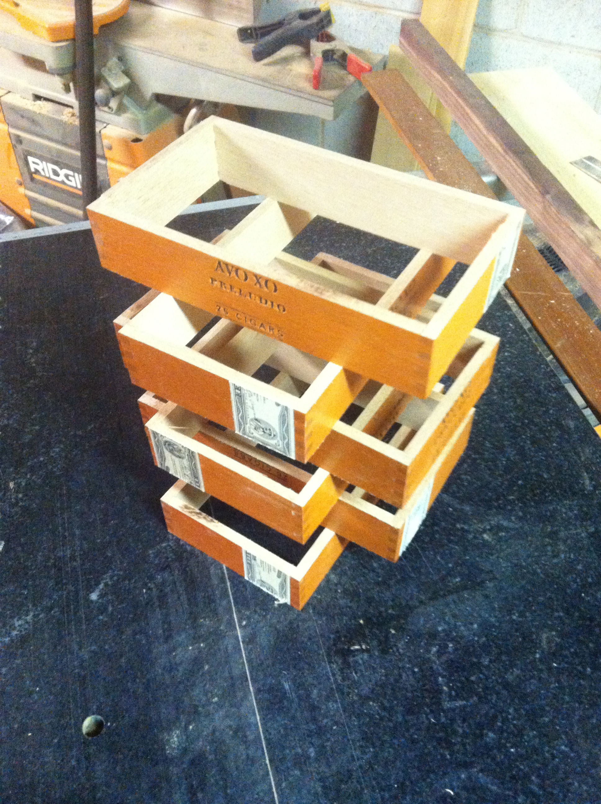 At this point, just a standard cutting board…What still undecided what to do with the cigar boxes.