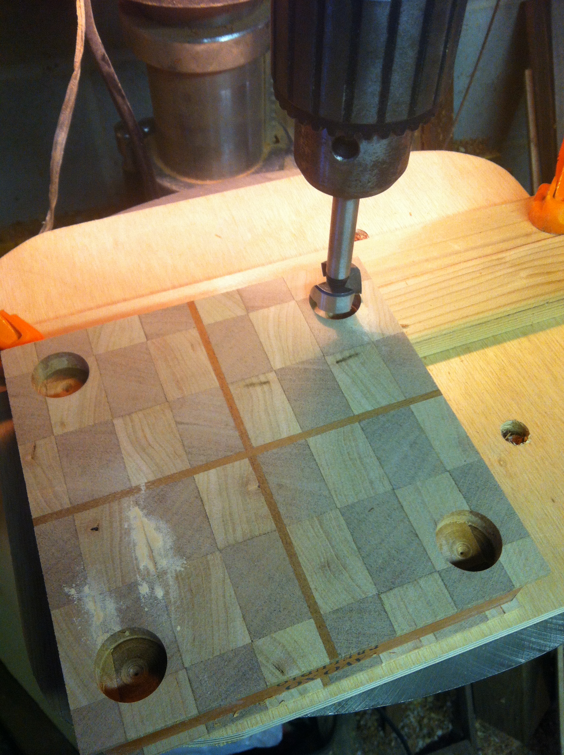Next, was using a forstner bit to create the holes in the bottom to accept the wine cork feet.