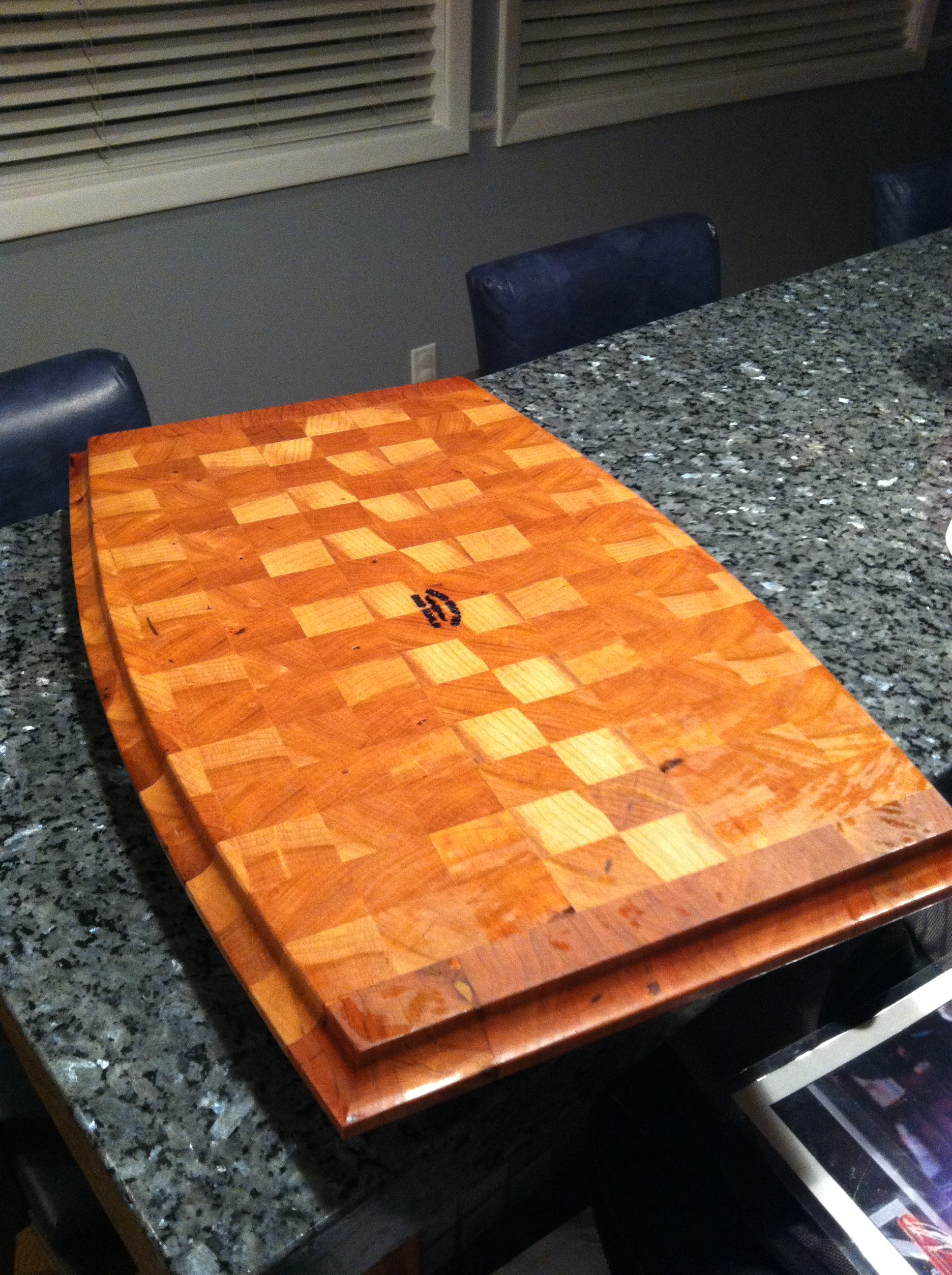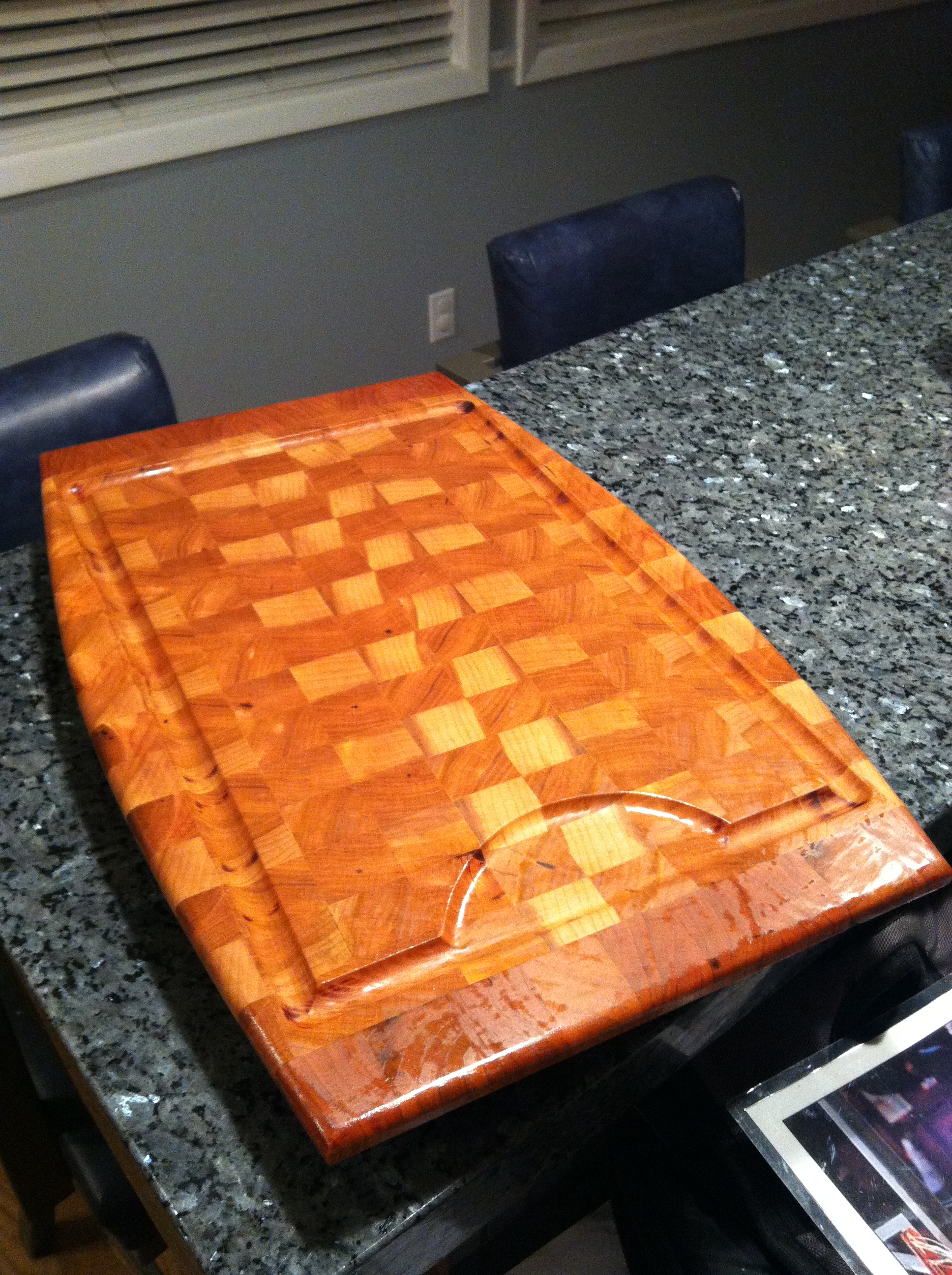 This is the second cutting board that I have purchased from Chad. I cannot recommend his work enough. Each board is not only a high quality great looking cutting board, but they are truly a work of art. This is an extremely functional cutting board that you will be pleased to showcase in your kitchen!
