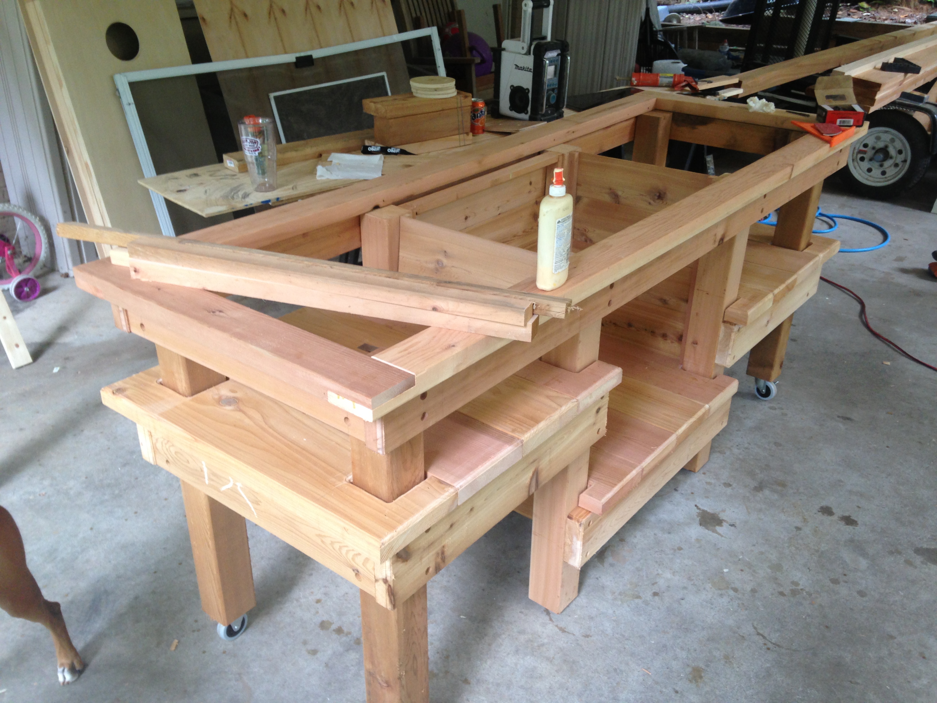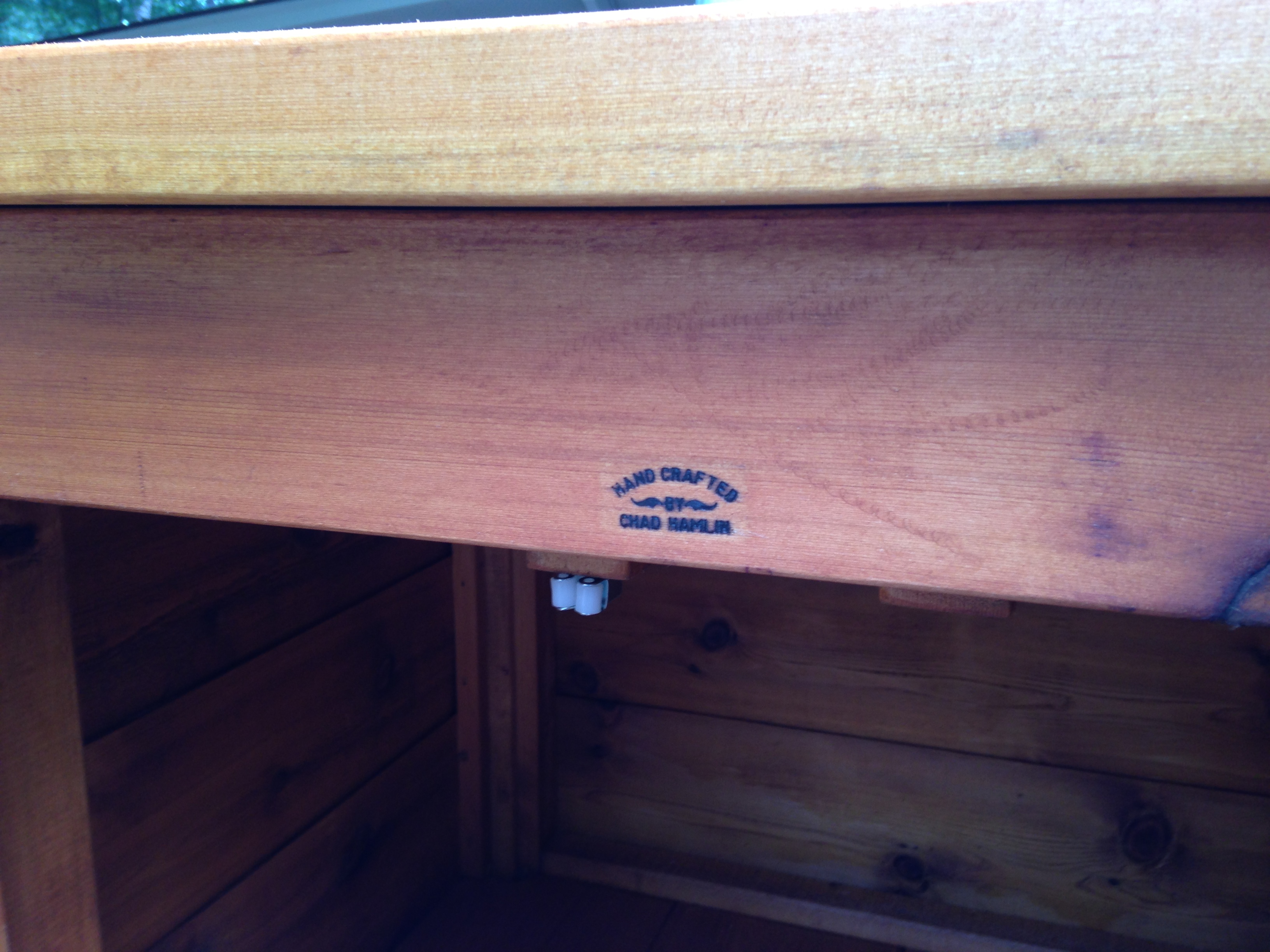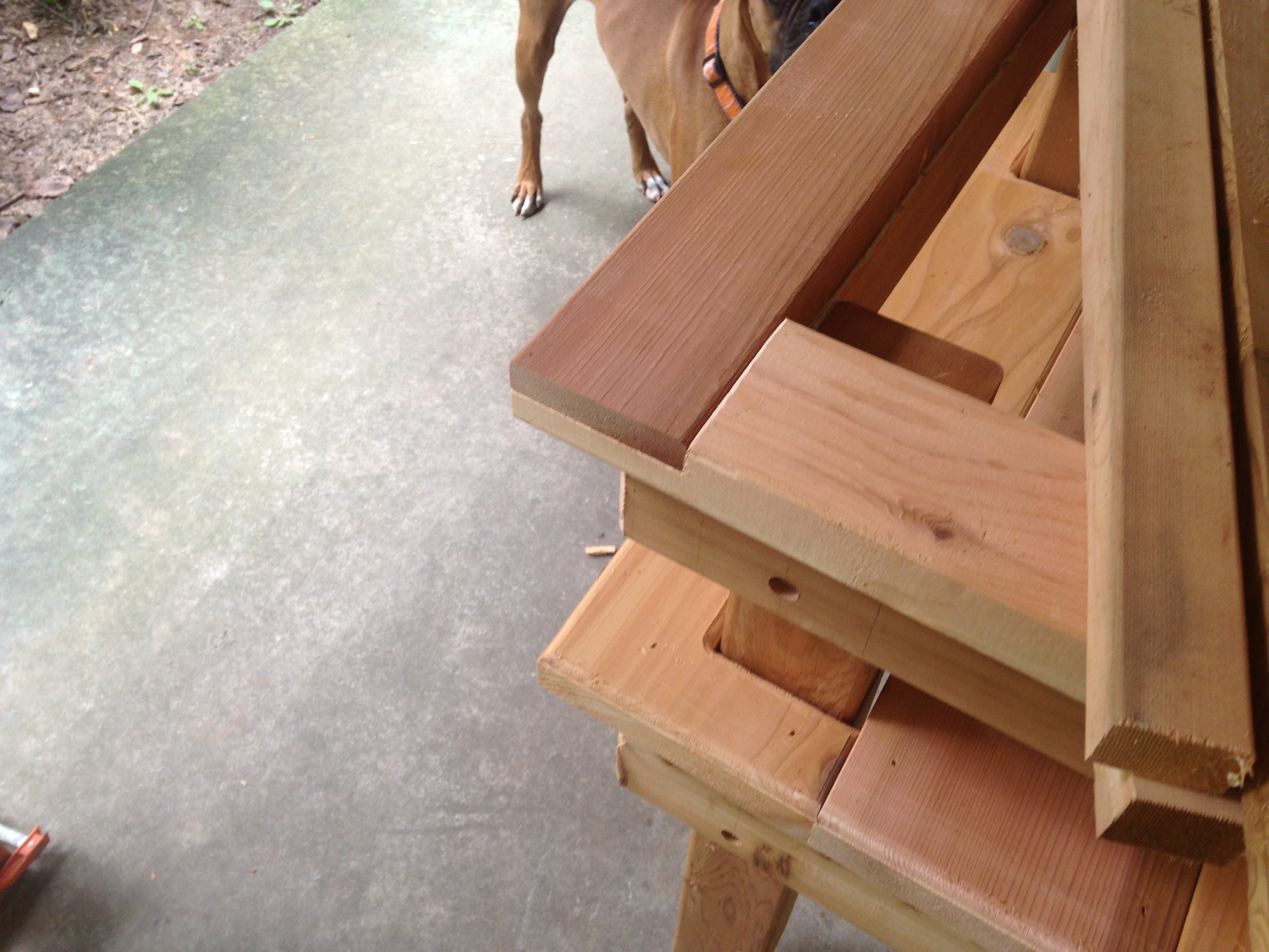 As usual, all of the fasteners are stainless, but are hidden by custom cut redwood plugs. The table was finished off with two coats of cedar tone TWP sealer and will last a lifetime if properly cared for.